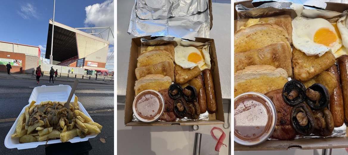 Really good chicken curry and chips! A must get on a match day!